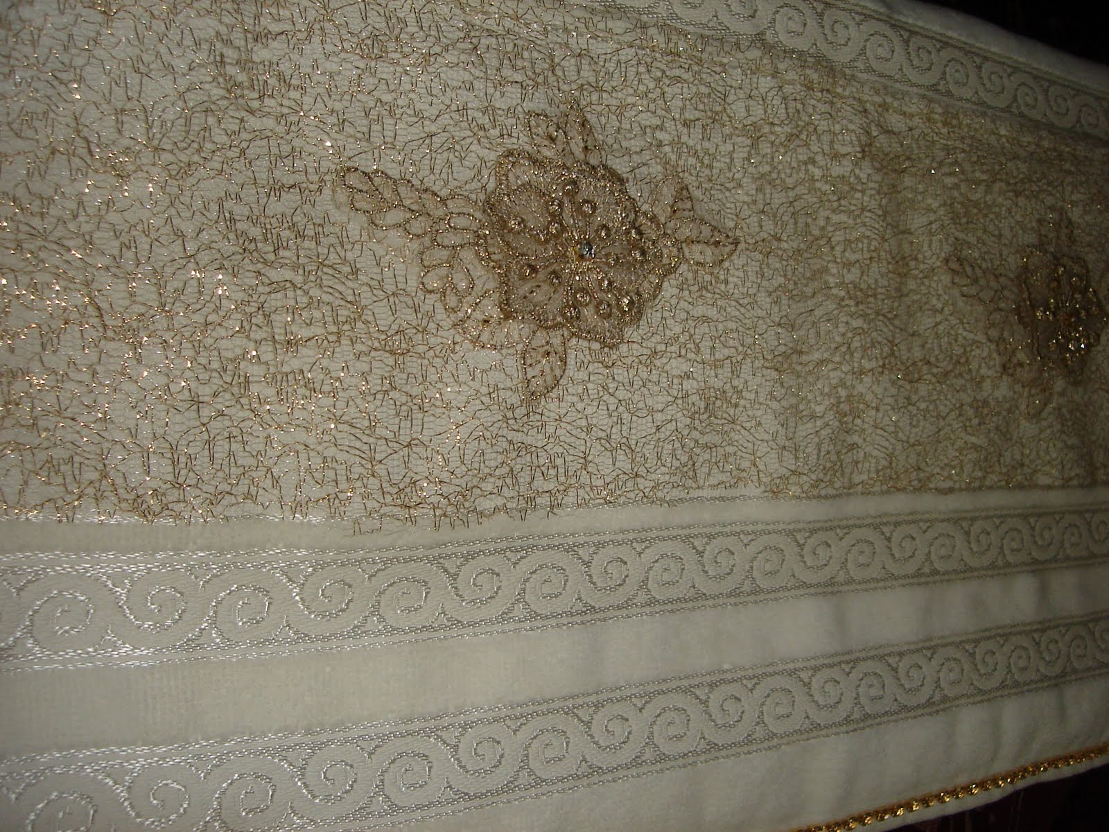Yeni rokoko işlemeli mutfak havlusu örneğinin yapılışı: Rokoko işlemesi milliner's iğnesi kullanarak yapılır.